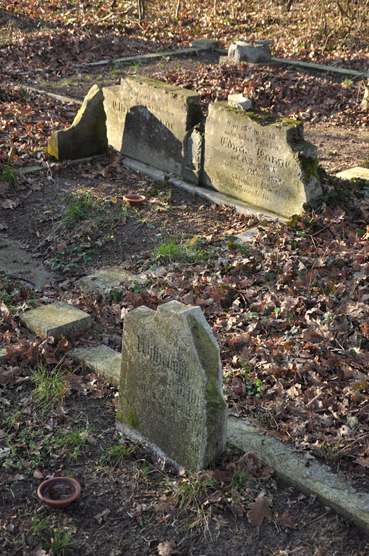 Na cmentarzu przetrwało kilka nagrobków i ich fragmentów, odłamki potłuczonych płyt, ramy opasające duże grobowce oraz jeden duży pomnik stojący na rodzinnym grobie. Szczególną uwagę zwracają dwa nagrobki w formie ściętych pni dębu oraz trudny do zidentyfikowania destrukt o półokrągłym kształcie. Prawdopodobnie ta murowana konstrukcja miała niegdyś formę grobowca znanego chociażby z pobliskiego cmentarza w Księstwie lub grobu pastora Tuve z Aleksandrowa Łódzkiego, jednak stopień zniszczenia nie pozwala tego jednoznacznie stwierdzić. [2014]